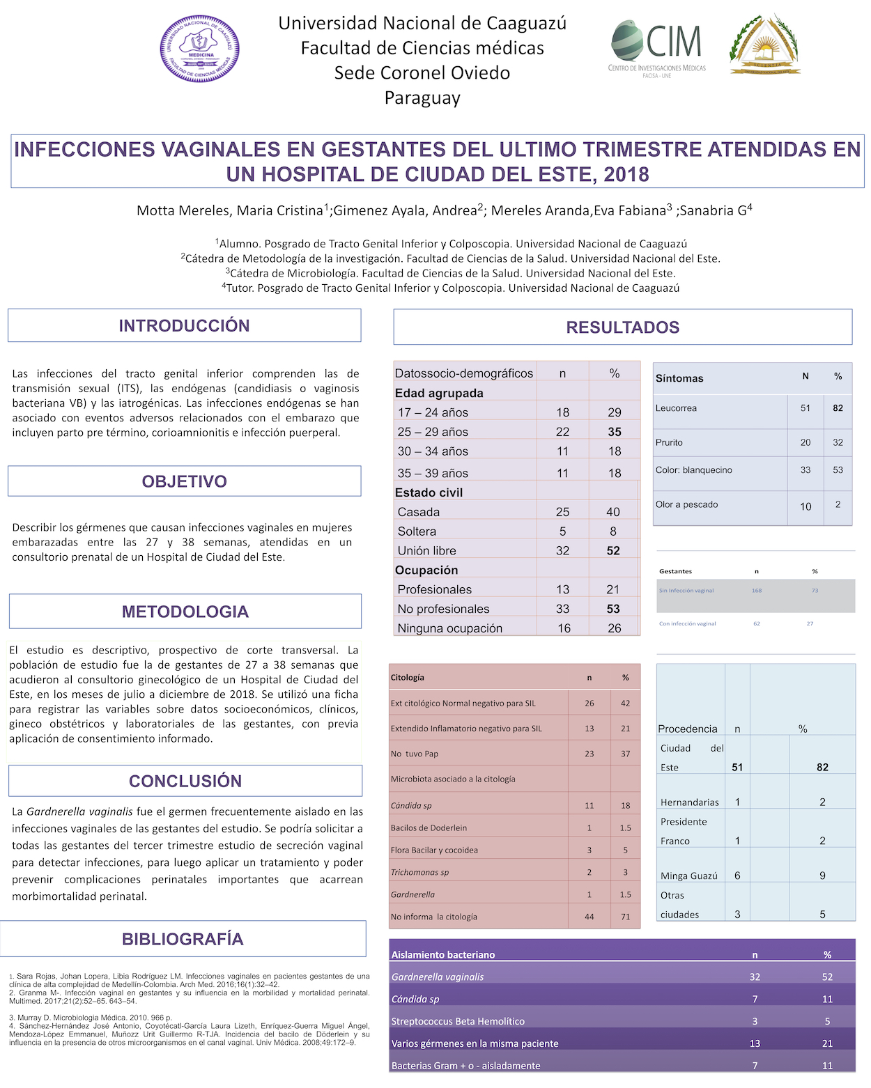 Infecciones vaginales en gestantes del ultimo trimestre atendidas en un hospital de Ciudad del Este, 2018