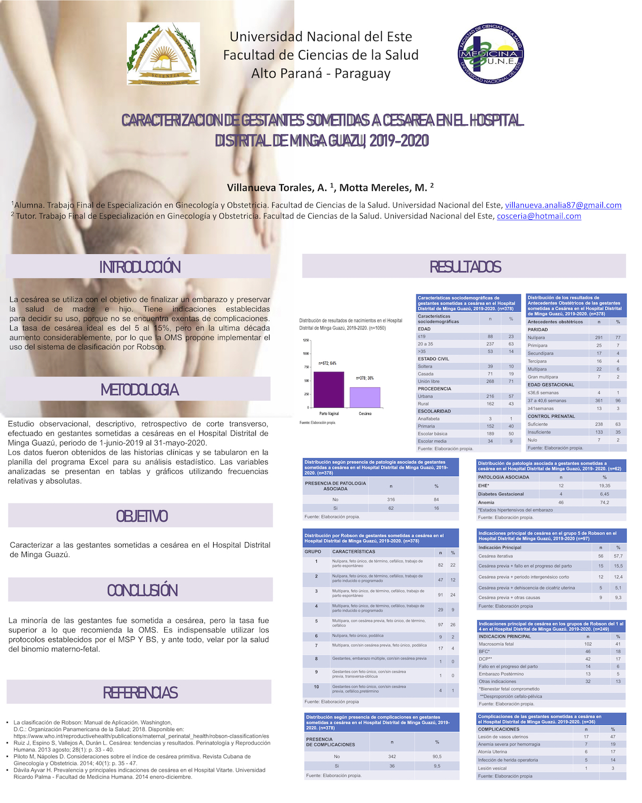 Caracterizacion de gestantes sometidas a cesarea en el Hospital Distrital de Minga Guazu, 2019-2020