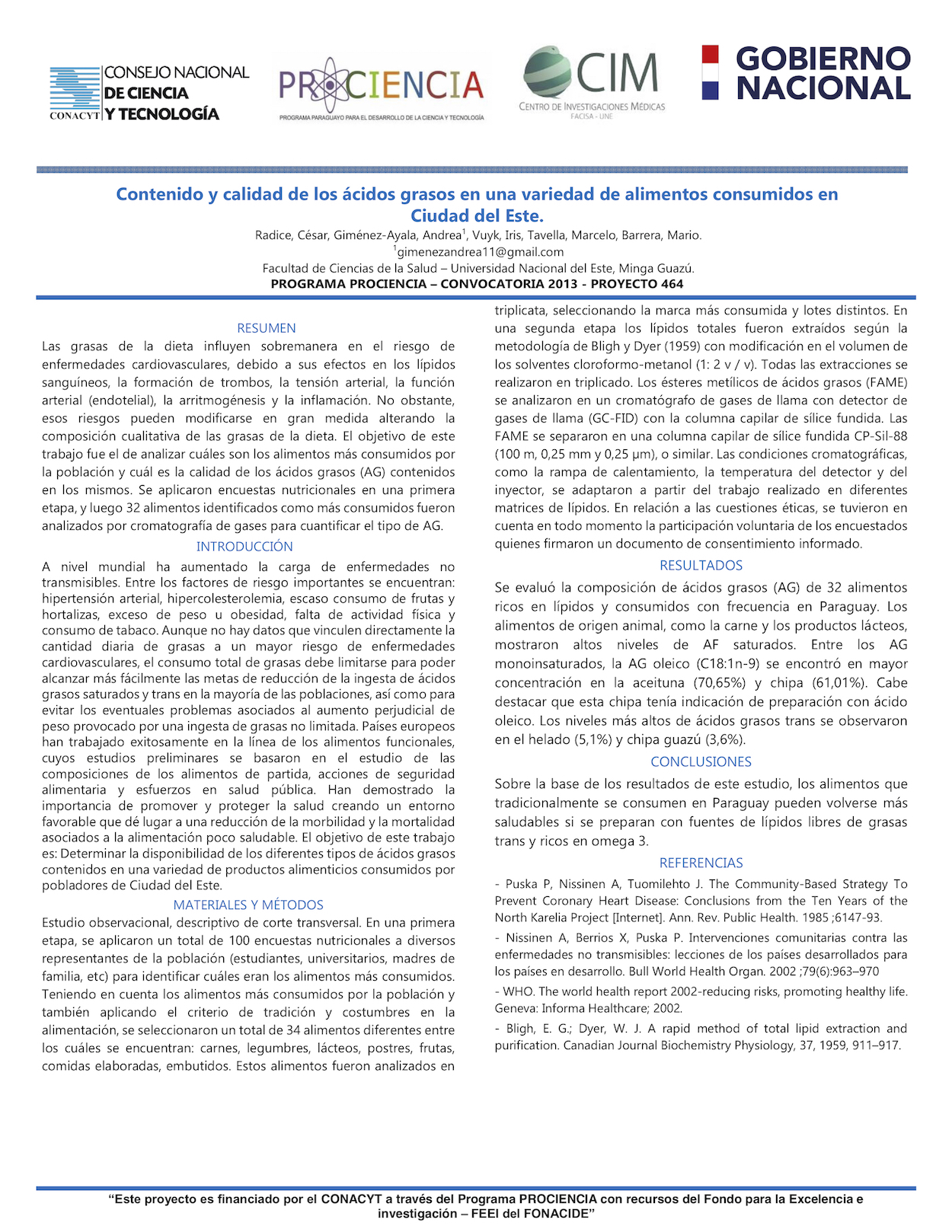 Contenido y calidad de los ácidos grasos en una variedad de alimentos consumidos en Ciudad del Este