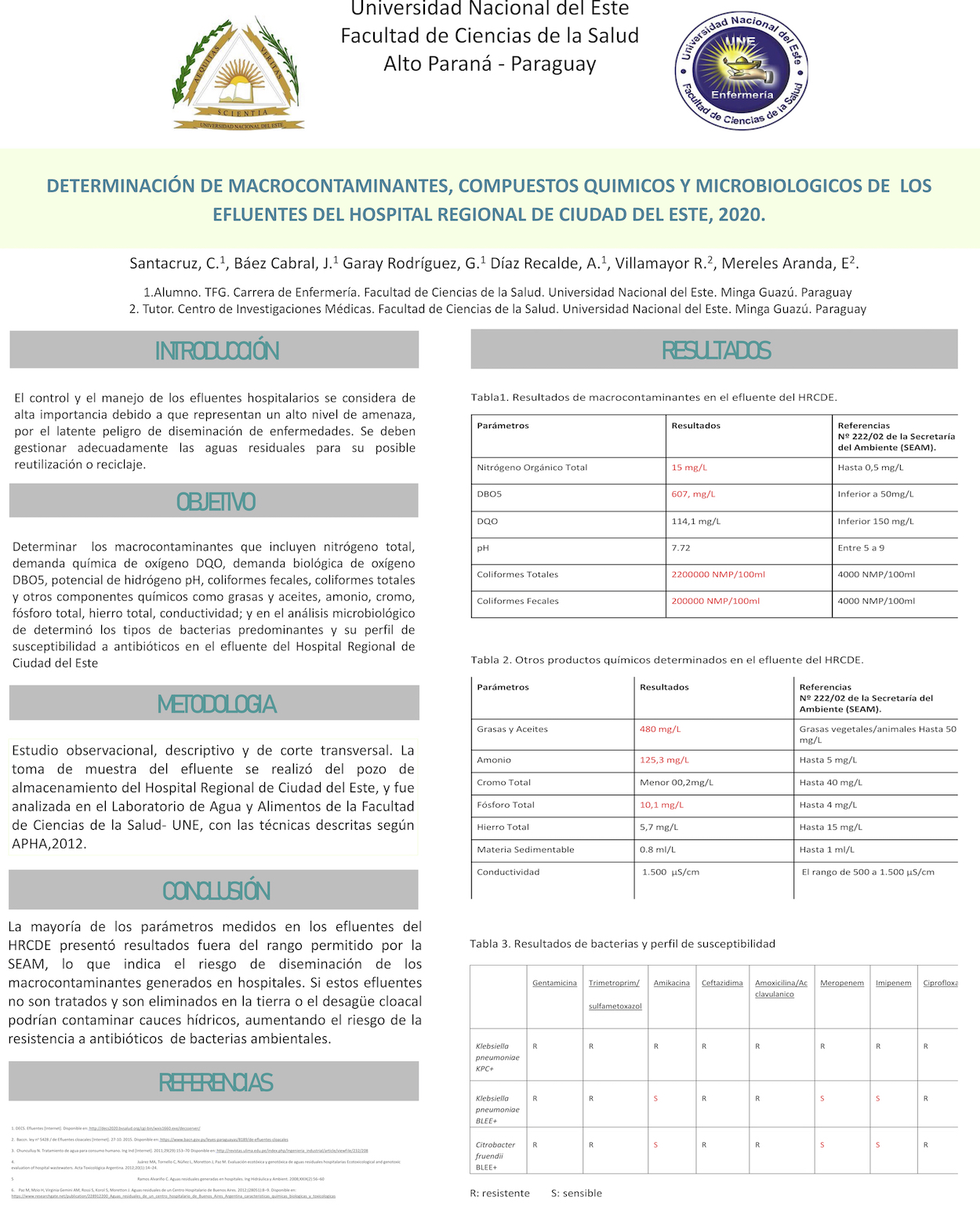 Determinación de macrocontaminantes, compuestos quimicos y microbiologicos de los efluentes del Hospital Regional de Ciudad del Este, 2020