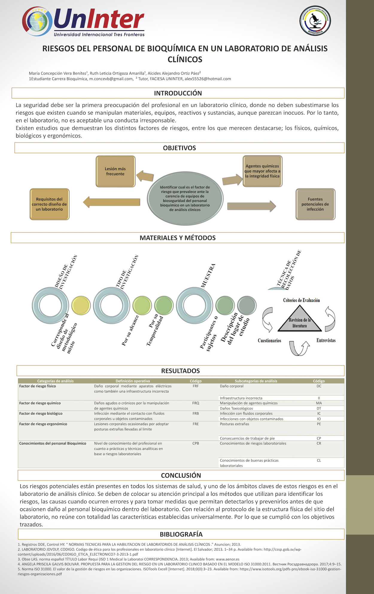 La seguridad debe ser la primera preocupación del profesional en un laboratorio clínico, donde no deben subestimarse los riesgos que existen cuando se manipulan materiales, equipos, reactivos y sustancias, aunque parezcan inocuos. Por lo tanto, en el laboratorio, no es aceptable una conducta irresponsable. Existen estudios que demuestran los distintos factores de riesgos, entre los que merecen destacarse; los físicos, químicos, biológicos y ergonómicos.