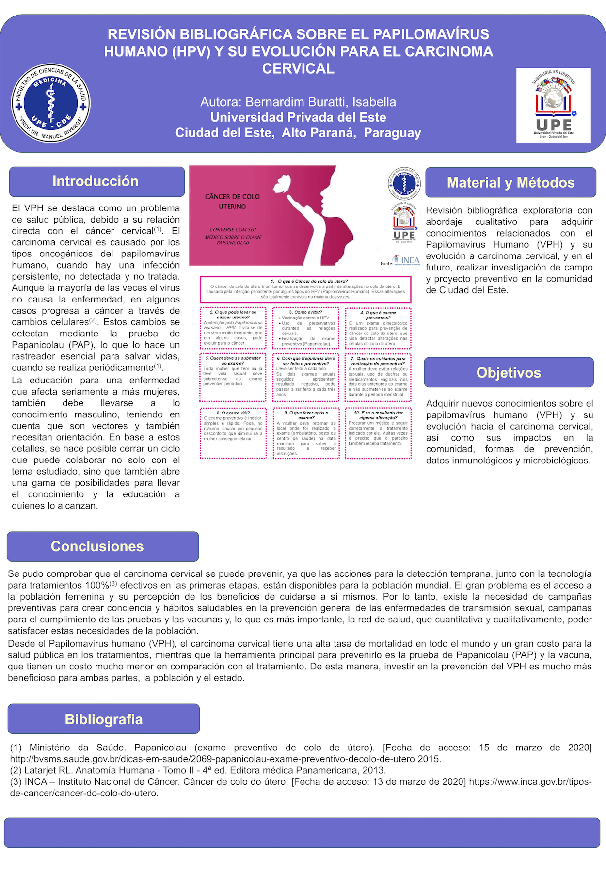 El VPH se destaca como un problema de salud pública, debido a su relación directa con el cáncer cervical. El carcinoma cervical es causado por los tipos oncogénicos del papilomavírus humano, cuando hay una infección persistente, no detectada y no tratada. Aunque la mayoría de las veces el virus no causa la enfermedad, en algunos casos progresa a cáncer a través de cambios celulares. Estos cambios se detectan mediante la prueba de Papanicolau (PAP), lo que lo hace un rastreador esencial para salvar vidas, cuando se realiza periódicamente. La educación para una enfermedad que afecta seriamente a más mujeres, también debe llevarse a lo conocimiento masculino, teniendo en cuenta que son vectores y también necesitan orientación. En base a estos detalles, se hace posible cerrar un ciclo que puede colaborar no solo con el tema estudiado, sino que también abre una gama de posibilidades para llevar el conocimiento y la educación a quienes lo alcanzan.